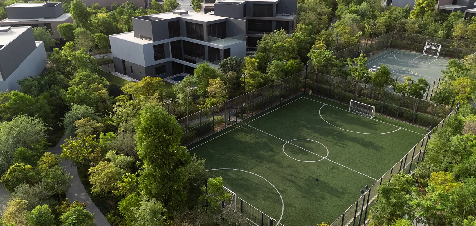 Masaar by Arada is a forest-inspired master community designed around wellness and nature-focused living in Sharjah. The development features over 50,000 trees, a signature green spine, and extensive cycling and jogging tracks stretching through landscaped parks. Residents enjoy access to swimming pools, fitness centres, sports courts, children’s play areas, and community hubs with retail, cafés, and dining options. The gated neighbourhoods offer smart home villas and townhouses with modern architecture, privacy, and direct park access. Masaar promotes an active, family-friendly lifestyle in a serene, sustainable environment connected to major highways.